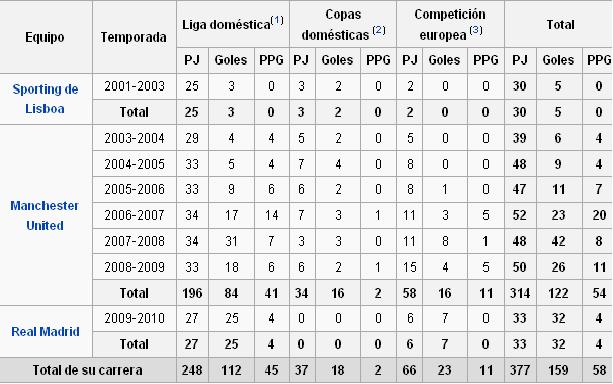 CRISTIANO RONALDO: ESTADISTICAS