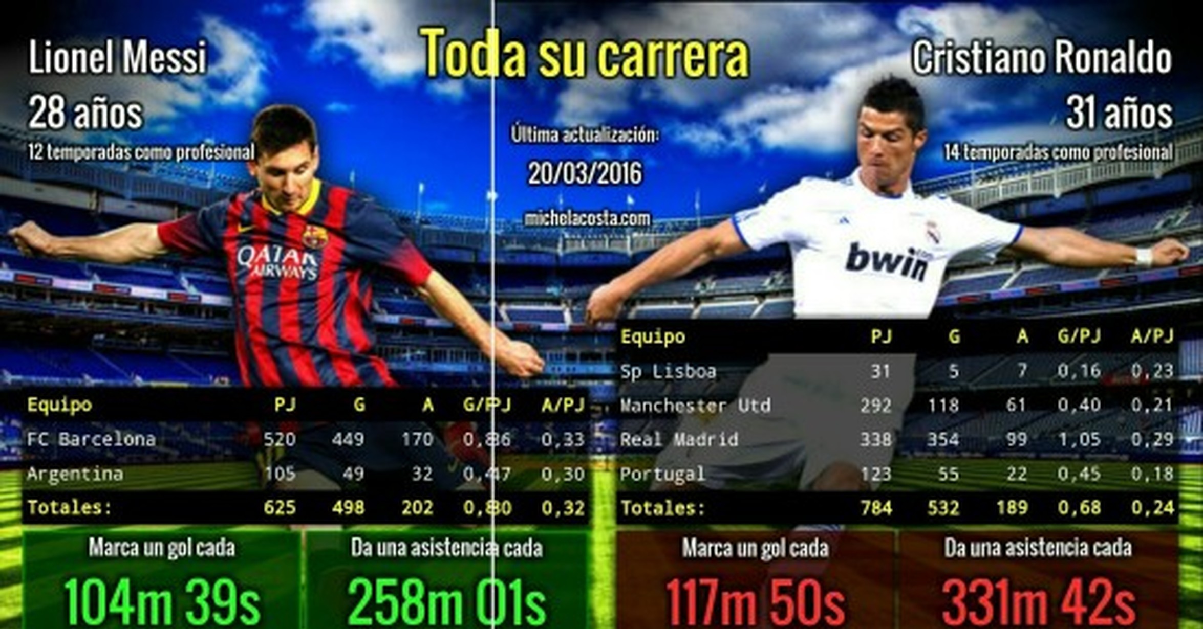 Estadísticas ACTUALIZADAS de Lionel Messi vs Cristiano ...
